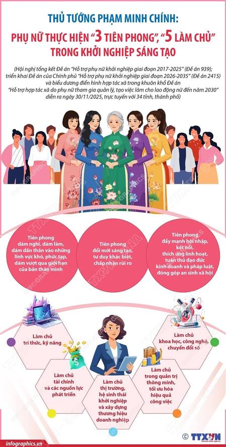 THỦ TƯỚNG PHẠM MINH CHÍNH: PHỤ NỮ THỰC HIỆN “3 TIÊN PHONG”, “5 LÀM CHỦ” TRONG KHỞI NGHIỆP SÁNG TẠO