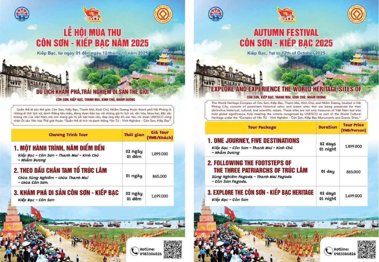 🛑 Thành phố Hải Phòng ra mắt 3 tour du lịch mới nhân dịp Khai hội mùa Thu Côn Sơn - Kiếp Bạc gồm: