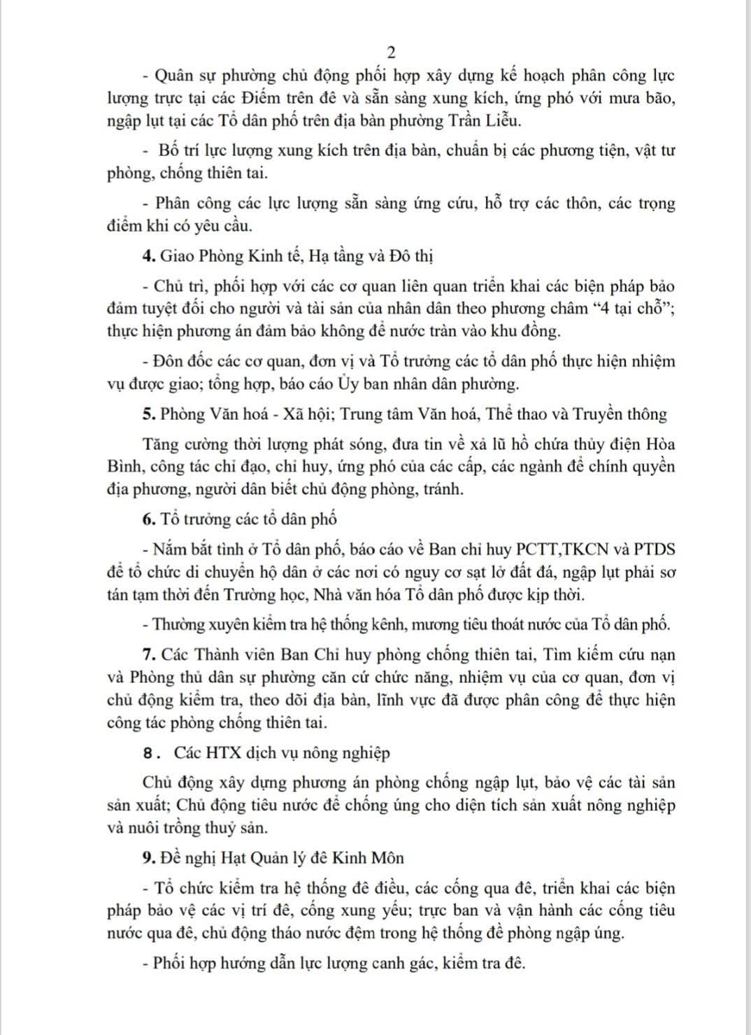 PHƯỜNG TRẦN LIỄU CHỦ ĐỘNG ỨNG PHÓ VỚI NGUY CƠ NGẬP LỤT KHI HỒ HÒA BÌNH XẢ LŨ