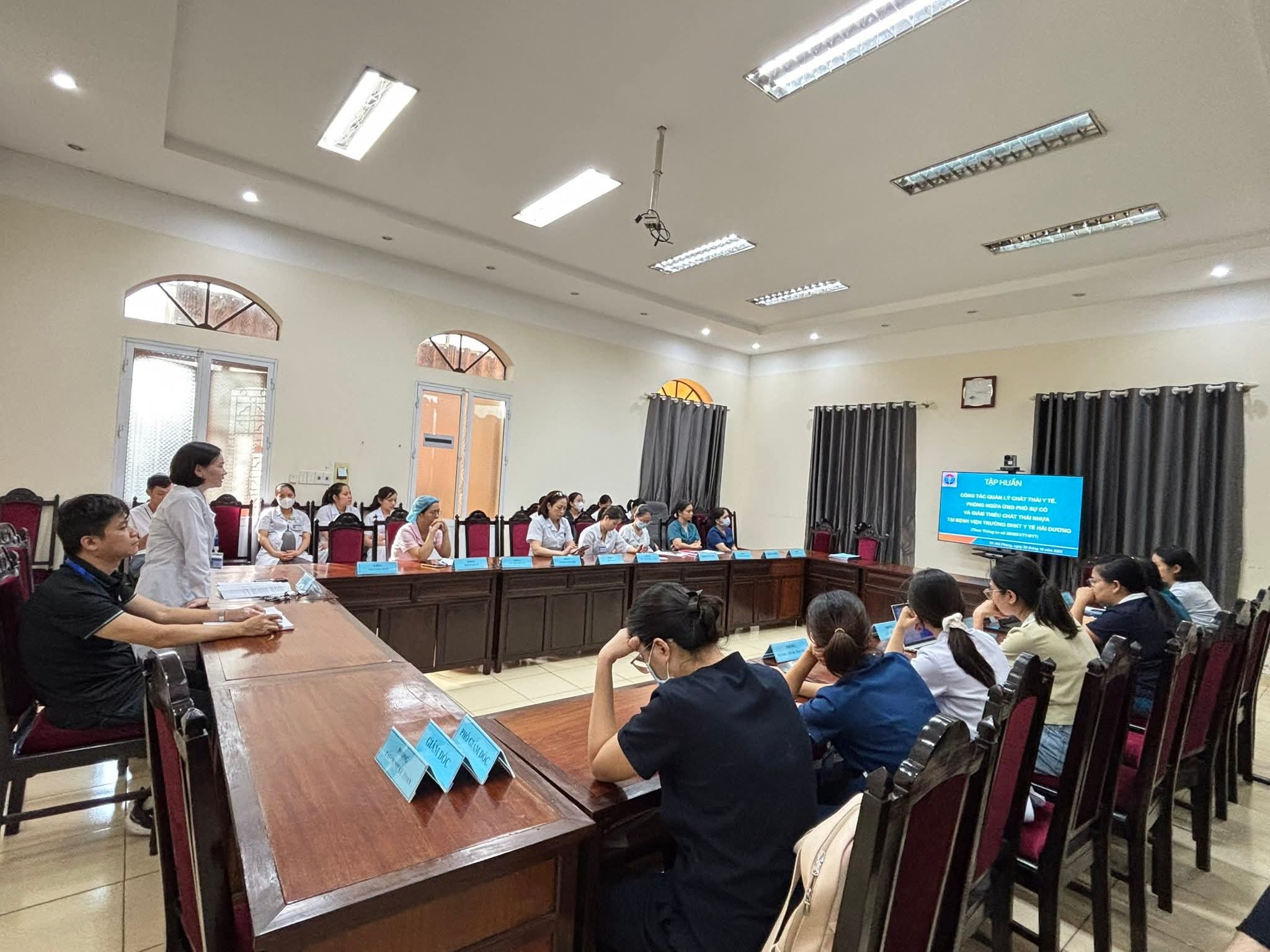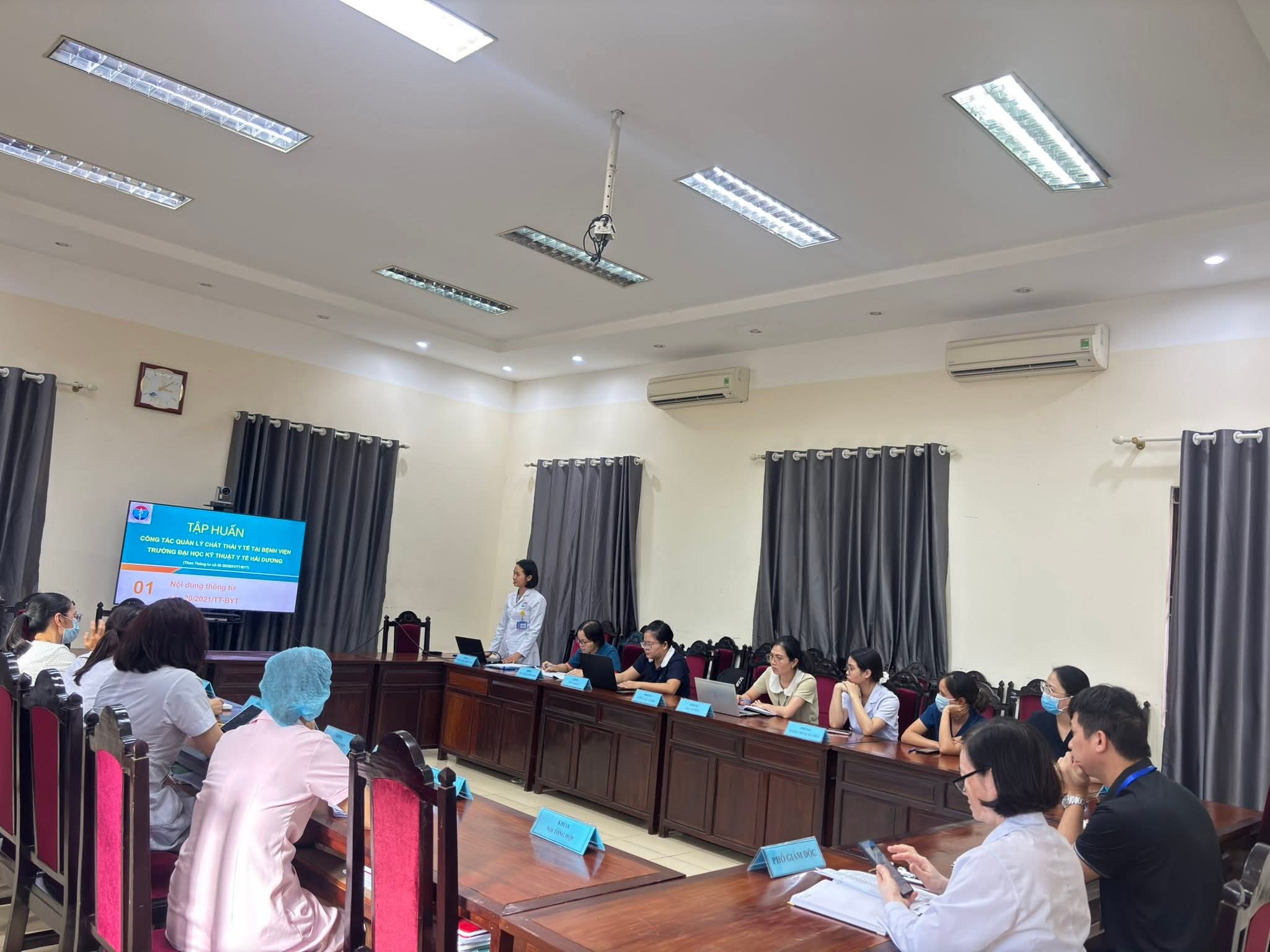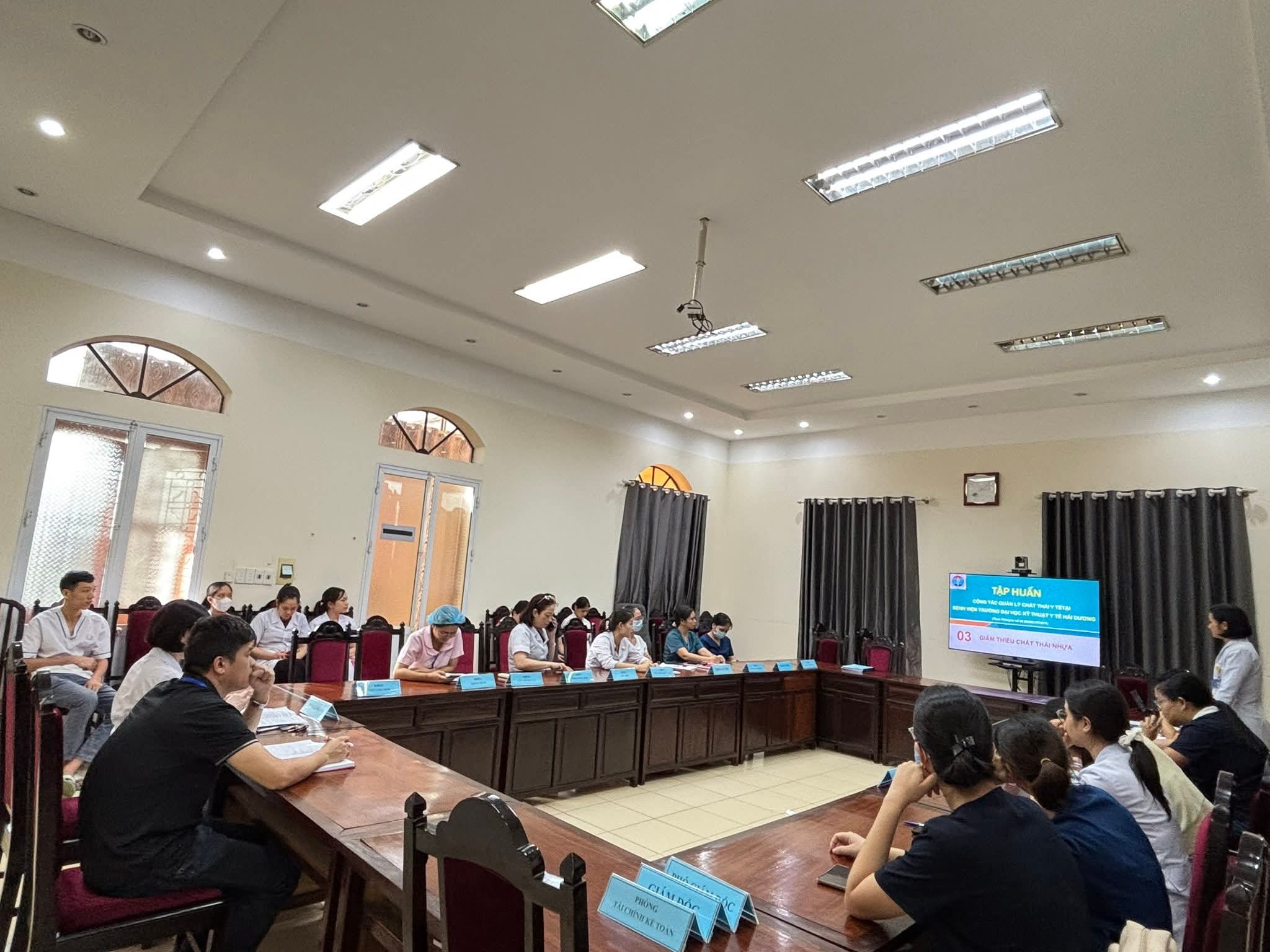 Hưởng ứng phong trào bảo vệ môi trường, hướng tới mục tiêu phát triển bền vững, Bệnh viện Trường Đại học Kỹ thuật Y tế Hải Dương đã tổ chức buổi tập huấn “Công tác quản lý chất thải, phòng ngừa sự cố môi trường và giảm thiểu chất thải nhựa” vào ngày 20/10/2025. Hoạt động nhằm nâng cao nhận thức, cập nhật kiến thức và kỹ năng thực hành cho cán bộ, viên chức, người lao động trong toàn Bệnh viện.