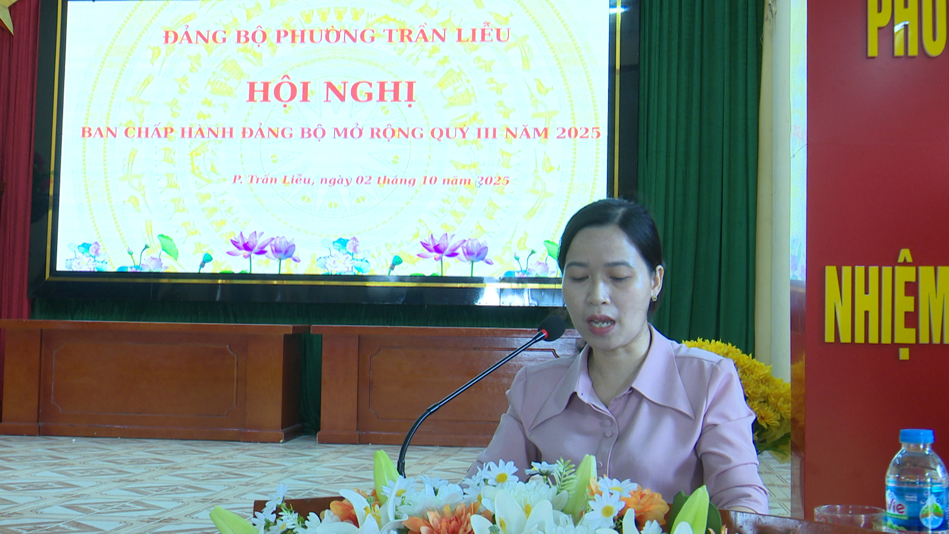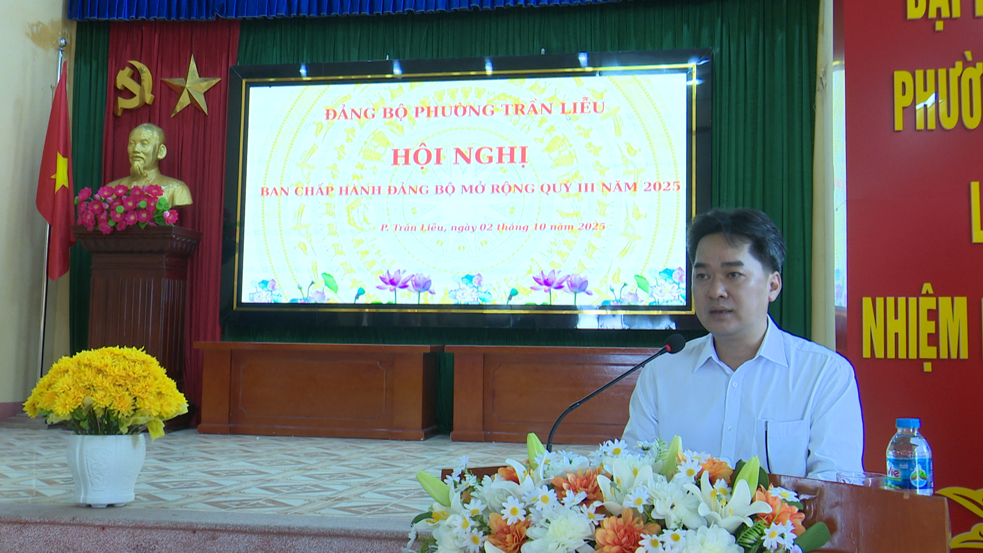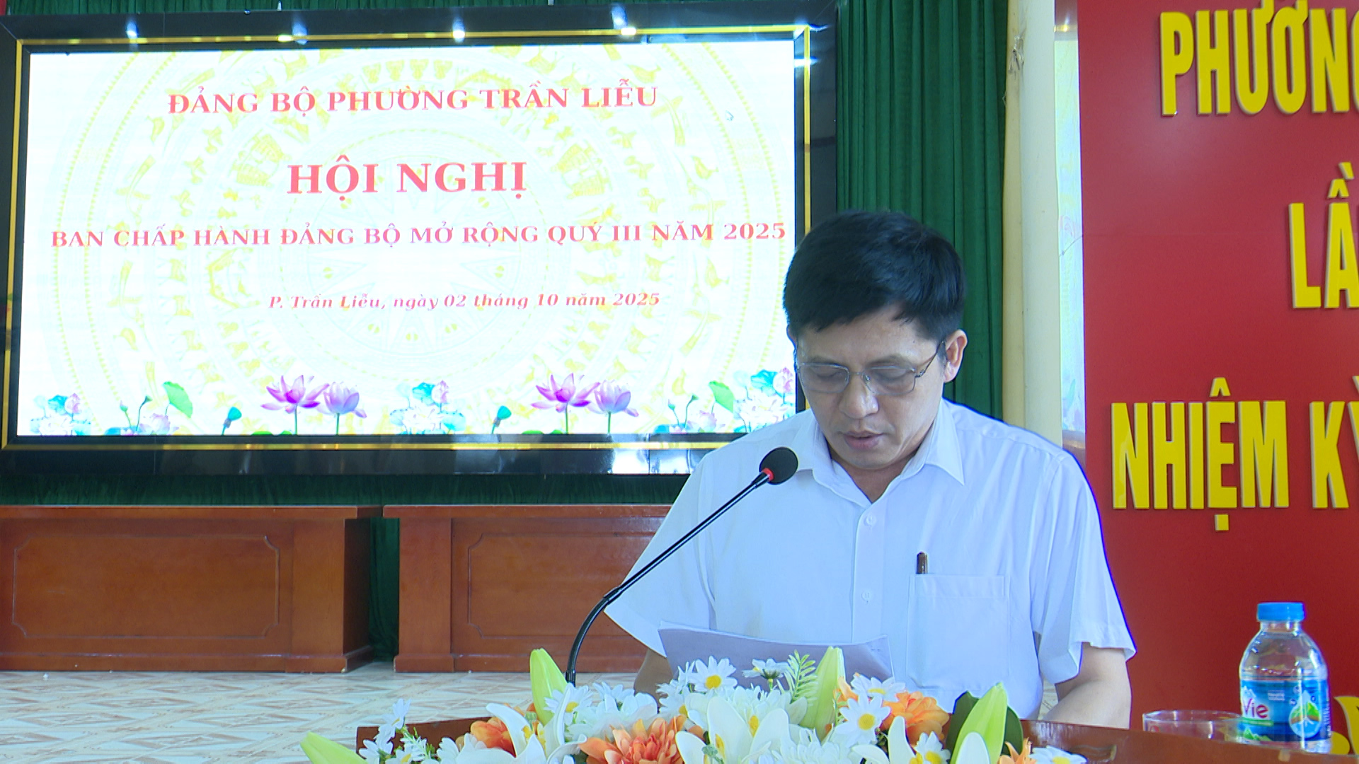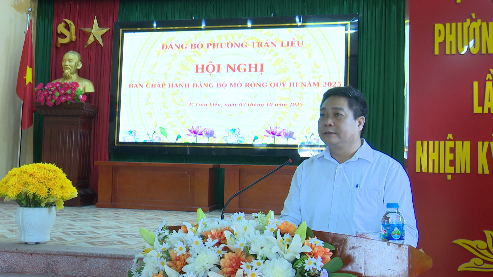 Ngày 02/10/2025, Ban Thường vụ đảng ủy Phường Trần Liễu tổ chức Hội nghị Ban chấp hành mở rộng quý III năm 2025 để đánh giá kết quả công tác và đề ra phương hướng, nhiệm vụ trọng tâm 3 tháng cuối năm 2025. Về dự và chỉ đạo Hội nghị có đồng chí Đỗ Văn Điệp, phó trưởng ban tổ chức Thành ủy, phó giám đốc công an thành phố; Lãnh đạo và chuyên viên các Ban xây dựng Đảng, Văn phòng Thành ủy Hải Phòng. Đại biểu phường đồng chí Nguyễn Hồng Quang bí thư đảng ủy, chủ tịch HĐND phường; đồng chí Nguyễn Văn Đức, phó bí thư thường trực đảng ủy, đồng chí Trần Thị Tình, phó bí thư- chủ tịch UBND phường; các đồng chí trong ban chấp hành đảng bộ; lãnh đạo các cơ quan, ban ngành; Các ông, bà bí thư chi bộ, tổ trưởng tổ dân phố trên địa bàn phường.