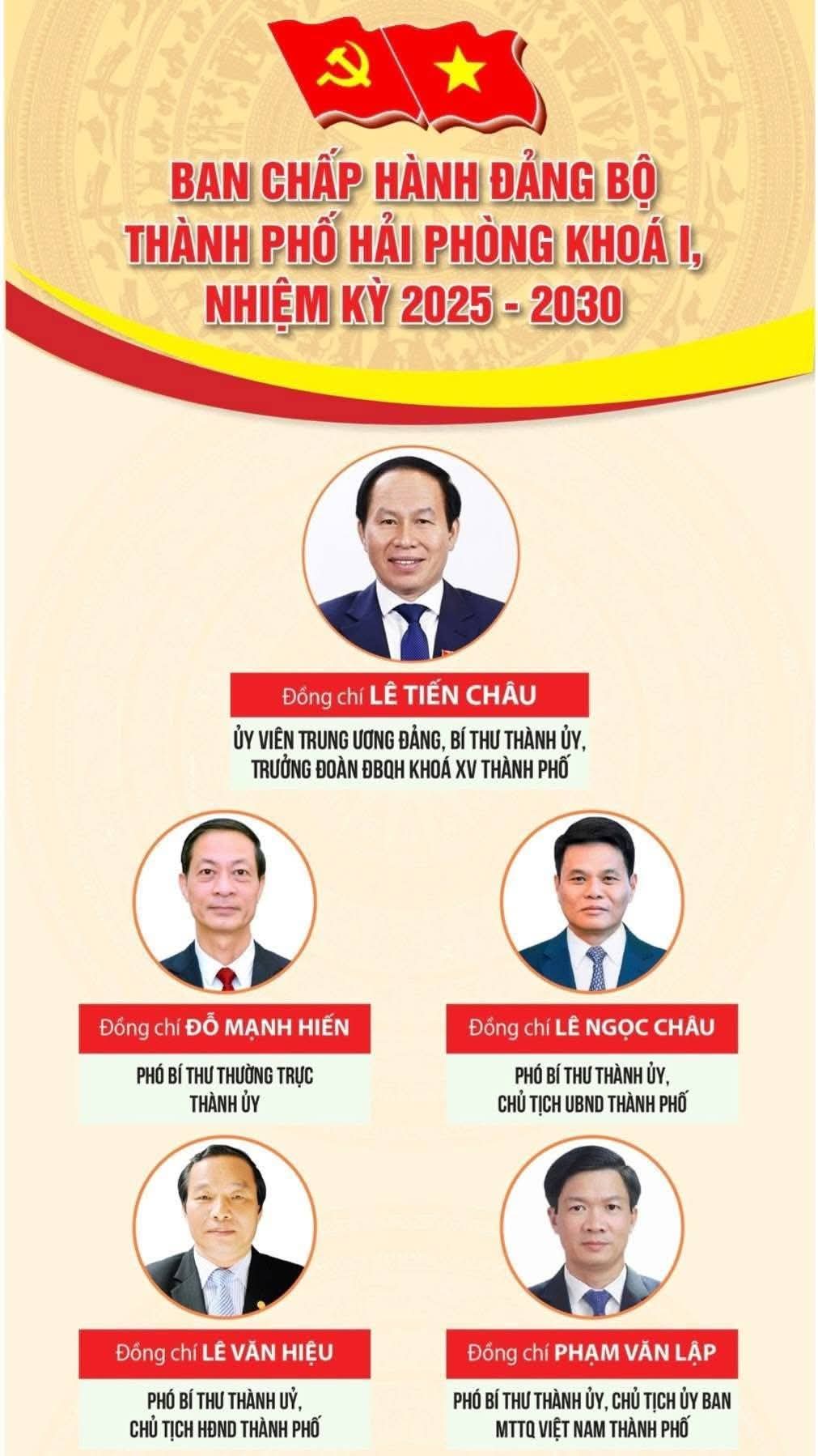 🛑 Danh sách 78 Ủy viên Ban Chấp hành Đảng bộ thành phố Hải Phòng nhiệm kỳ 2025 - 2030