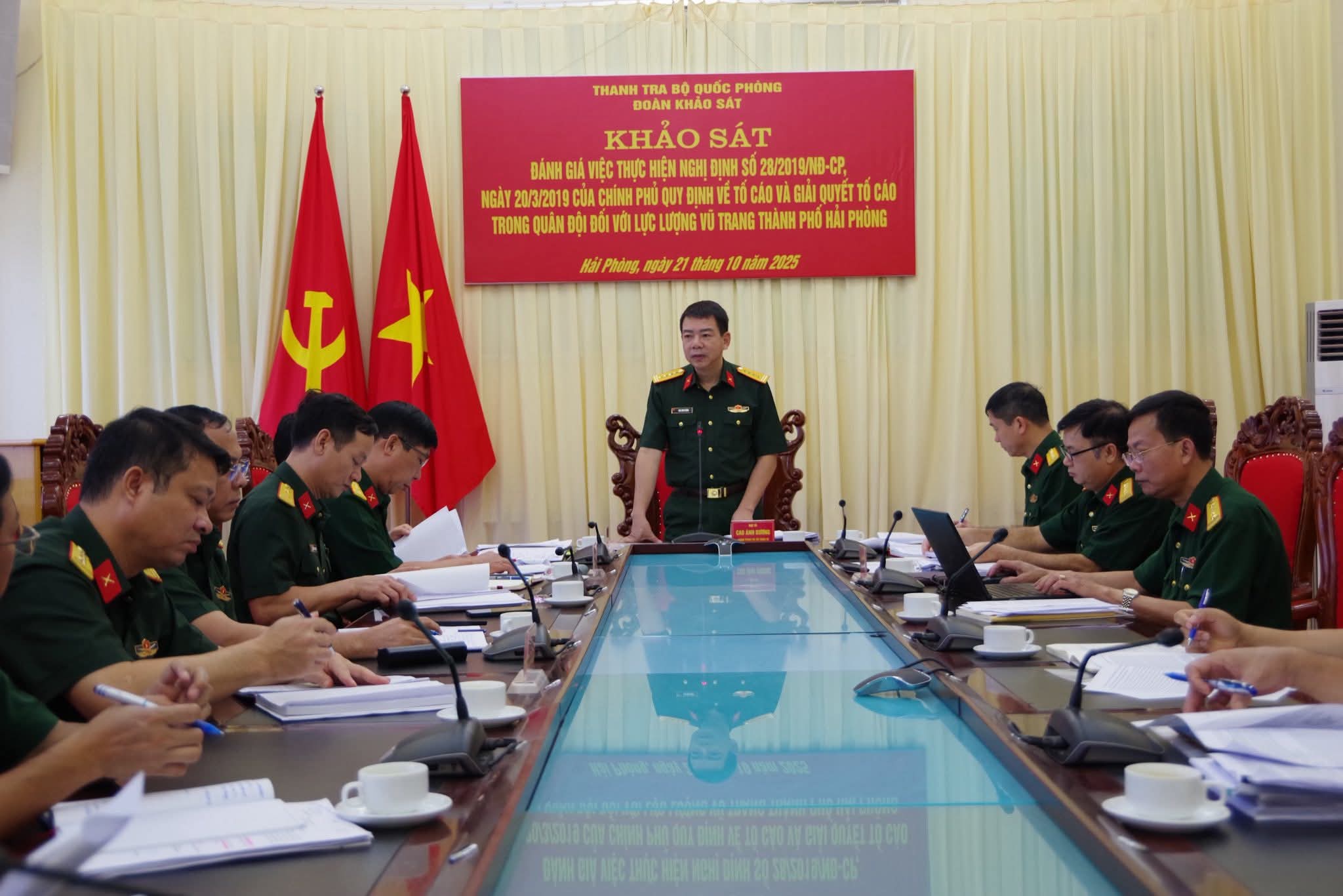 THANH TRA BỘ QUỐC PHÒNG KHẢO SÁT, ĐÁNH GIÁ VIỆC THỰC HIỆN NGHỊ ĐỊNH SỐ 28 CỦA CHÍNH PHỦ TRONG LLVT THÀNH PHỐ HẢI PHÒNG
