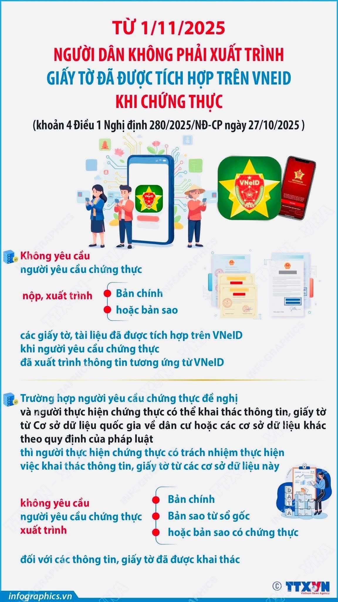 🇻🇳TỪ 01/11/2025: NGƯỜI DÂN KHÔNG PHẢI XUẤT TRÌNH GIẤY TỜ ĐÃ ĐƯỢC TÍCH HỢP TRÊN VNEID