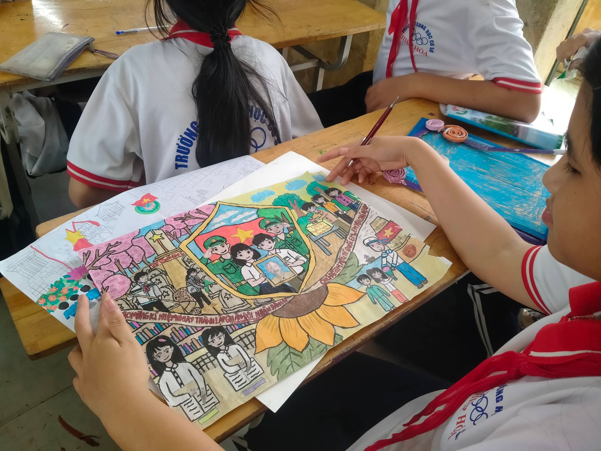 💡 Mỗi bức tranh không chỉ là sản phẩm nghệ thuật mà còn là thông điệp ý nghĩa về lý tưởng sống đẹp, sống có ích, tiếp bước cha anh, xứng đáng là cháu ngoan Bác Hồ.