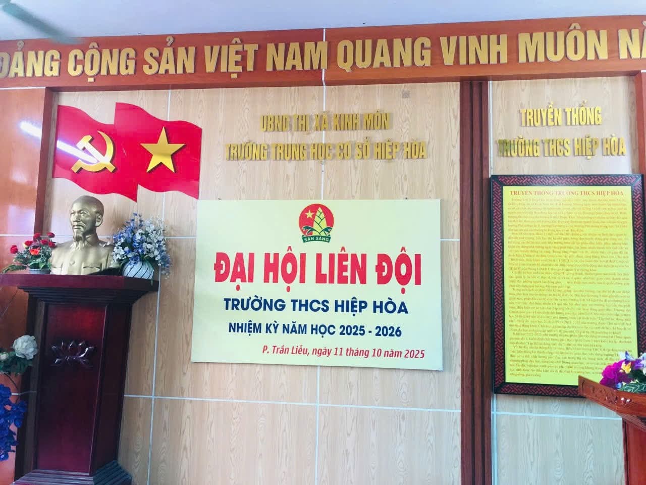 Thực hiện nhiệm vụ năm học, công tác Đội và phong trào thiếu nhi năm học 2025- 2026, được sự chỉ đạo của BGH, cấp uỷ Liên đội trường THCS Hiệp Hòa long trọng tổ chức Đại hội liên đội nhiệm kỳ năm học 2025- 2026 vào chiều ngày 11/10/2025.