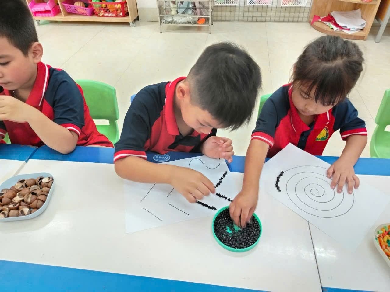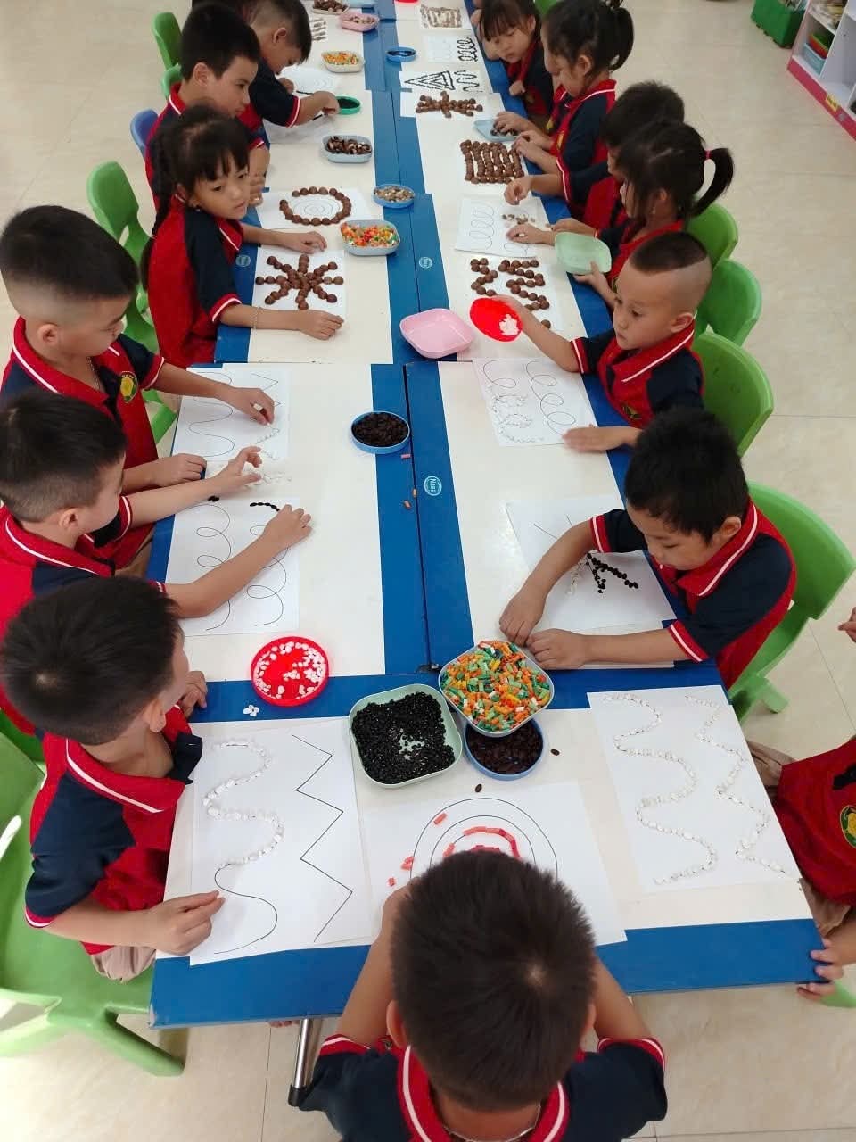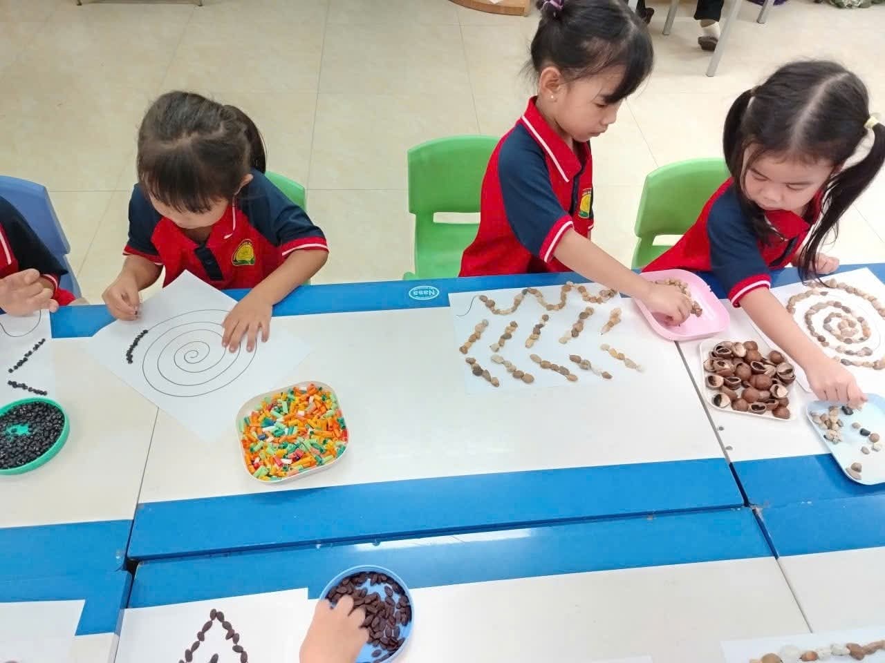 🌱 Phát triển khả năng sáng tạo: Trẻ được tự do lựa chọn và sắp xếp hột hạt theo ý tưởng của mình.