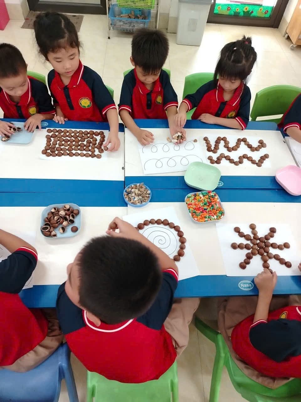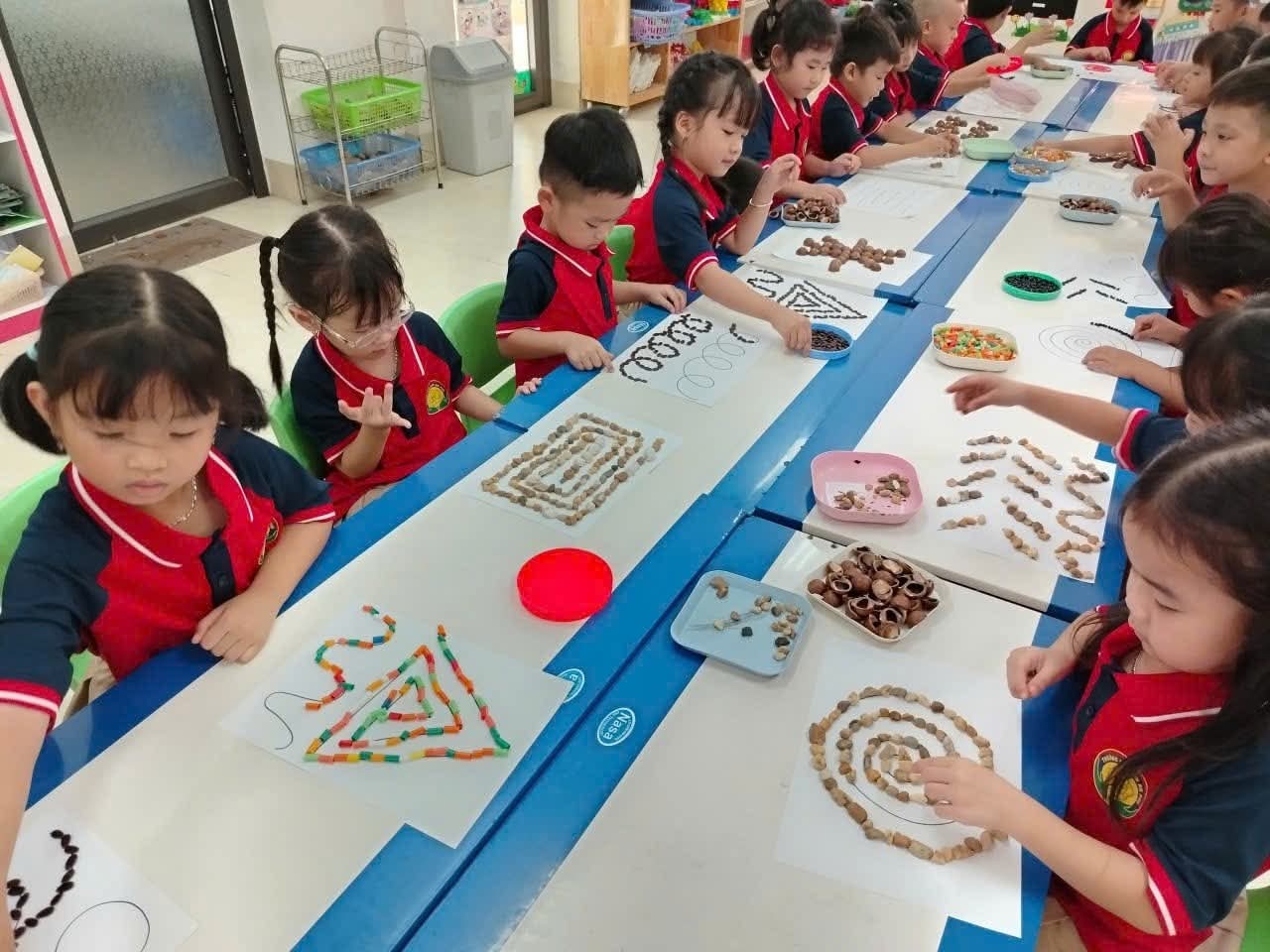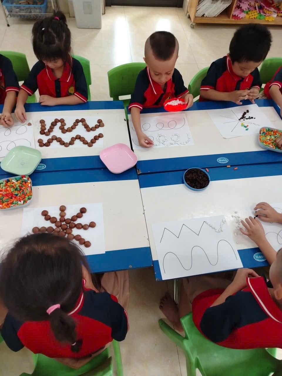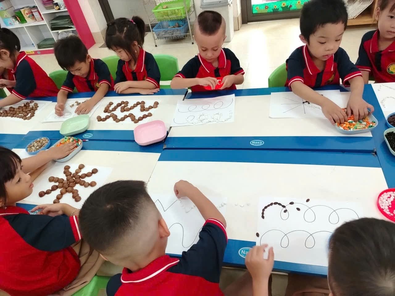 🌱 Phát triển khả năng sáng tạo: Trẻ được tự do lựa chọn và sắp xếp hột hạt theo ý tưởng của mình.